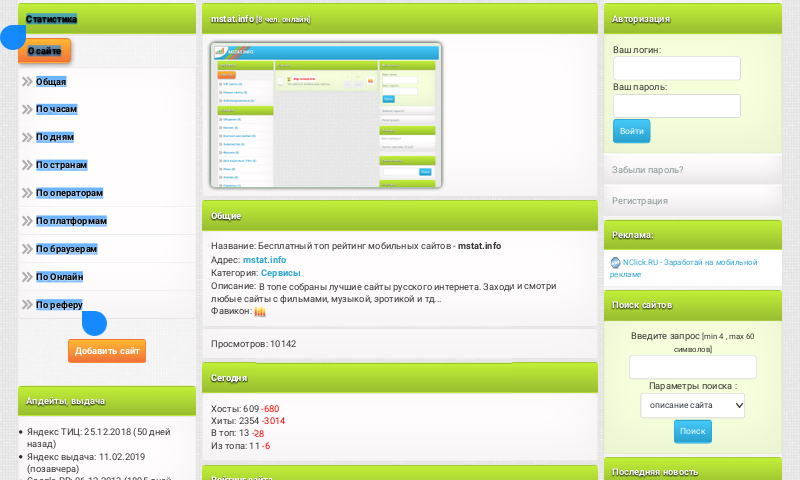 В чём заключается наглядность статистики сайта в Вашем рейтинге ?