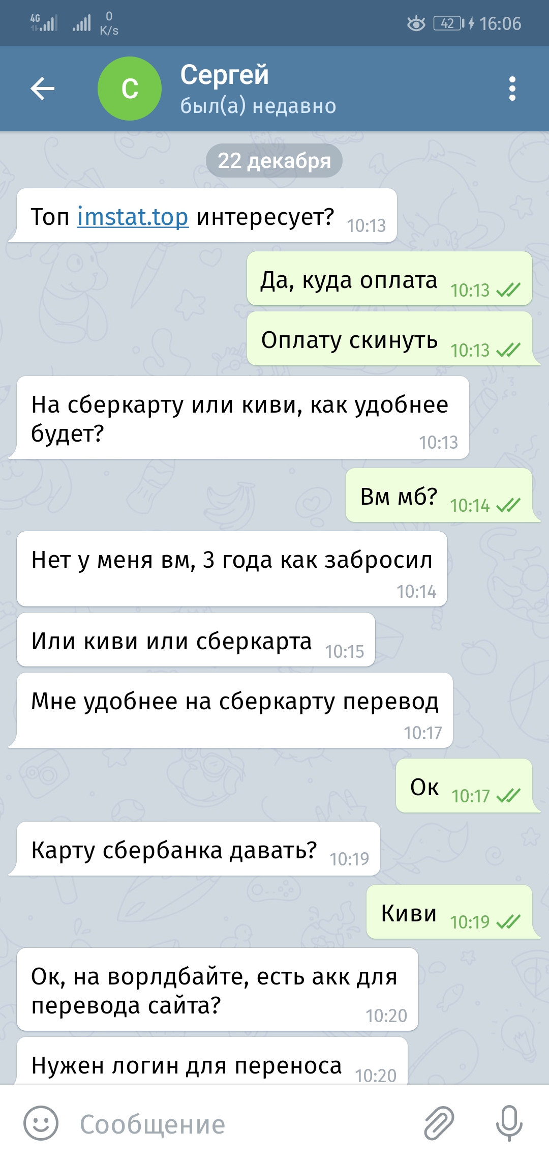 Покупал у него утром топ рейтинг сайтов. Седелка прошла успешно, деньги скинул первым (300р).