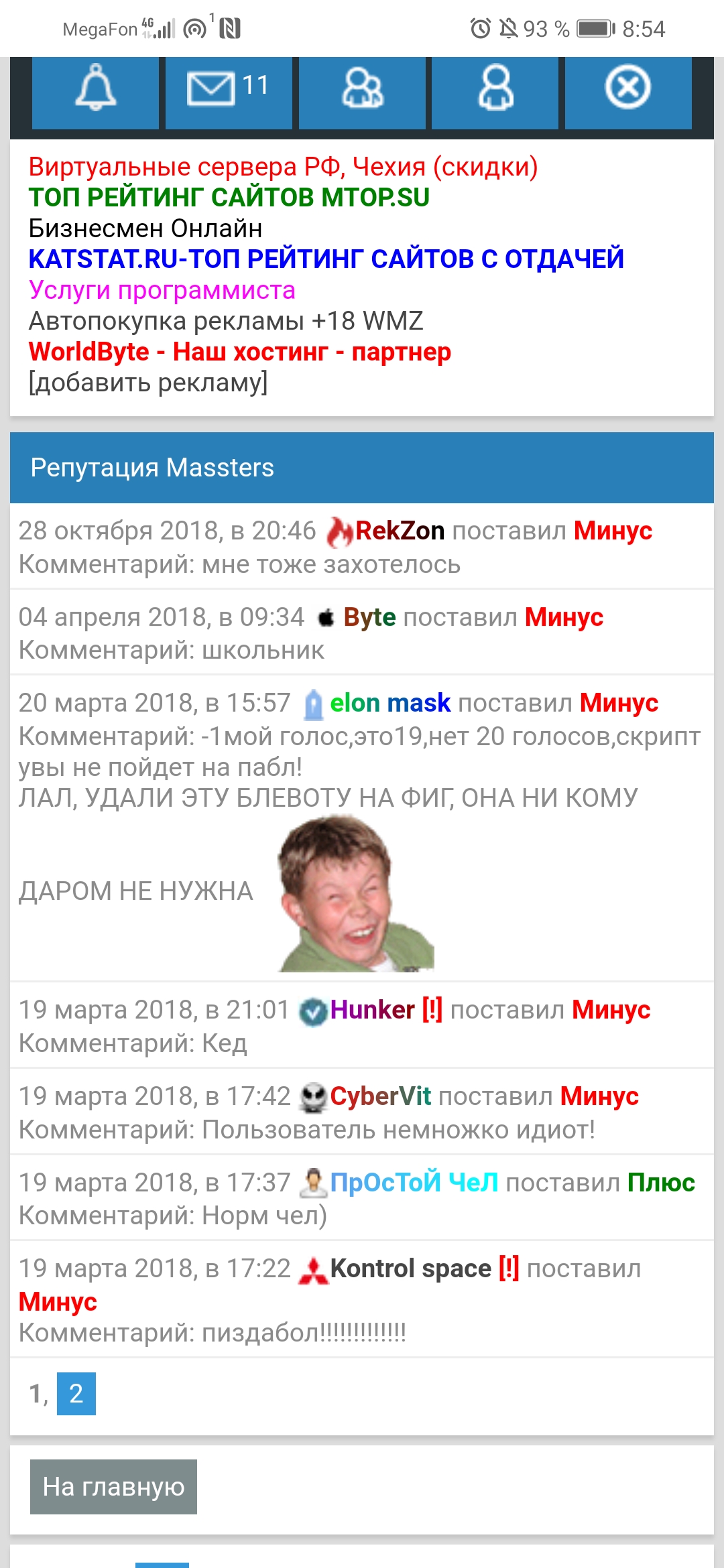 Данный пользователь на доске позора
