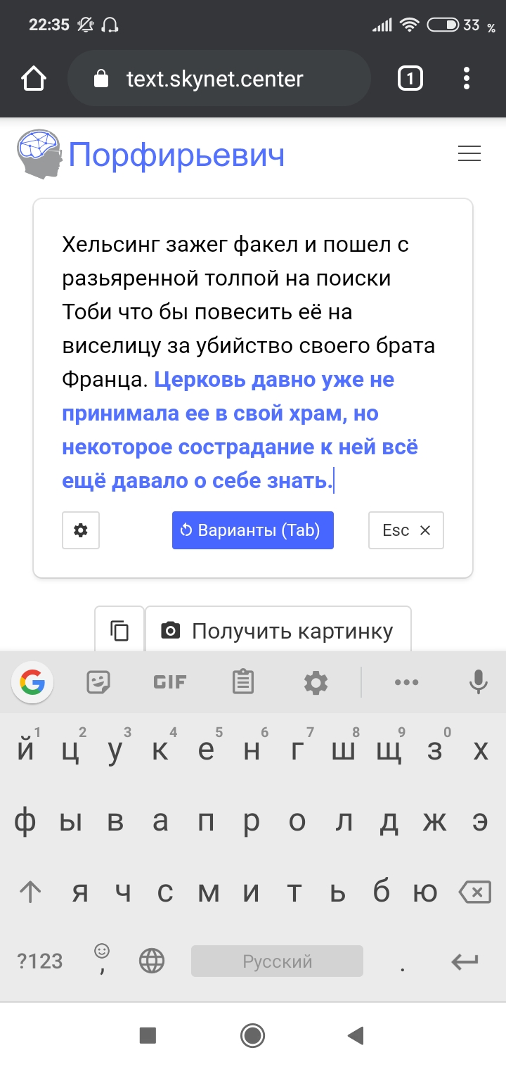 При этом, чем длинее история написана изначально, тем правдоподобнее будет сгенерировано её продолжение.