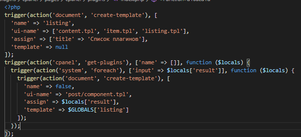 компиляция после сборки триггеров в php (Сделал его форматировние чтоб легче прочесть что там происходит)
