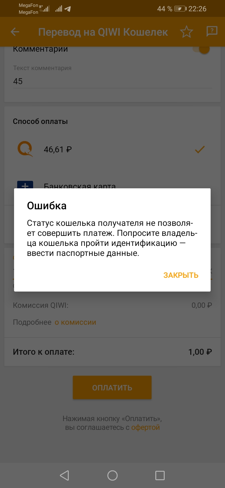 Нужно протестировать оплату тестовую оплату pf 1 рубль через киви для телеграм бота возрат средств сразу же на ваш кошелек