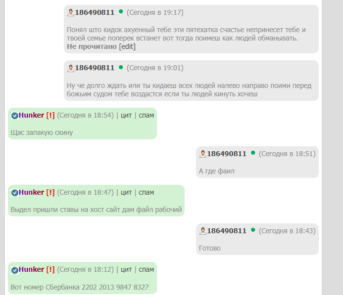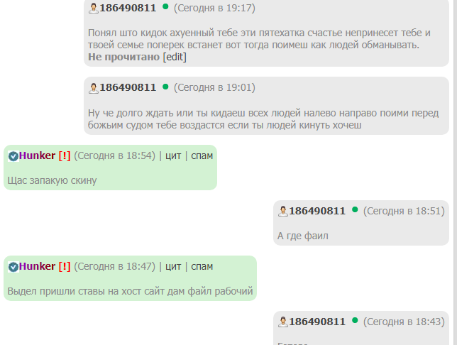 Создал тему помощи по исправлению скрипта тут [url=]https://bym.guru/forum/topic/144335[/url] откликнулся данный человек Hunker сказал што поможет в даннои ситуаций в итоге деньги взял а неработы што он сделал ни его и ничего вот переписка в pdf в низу