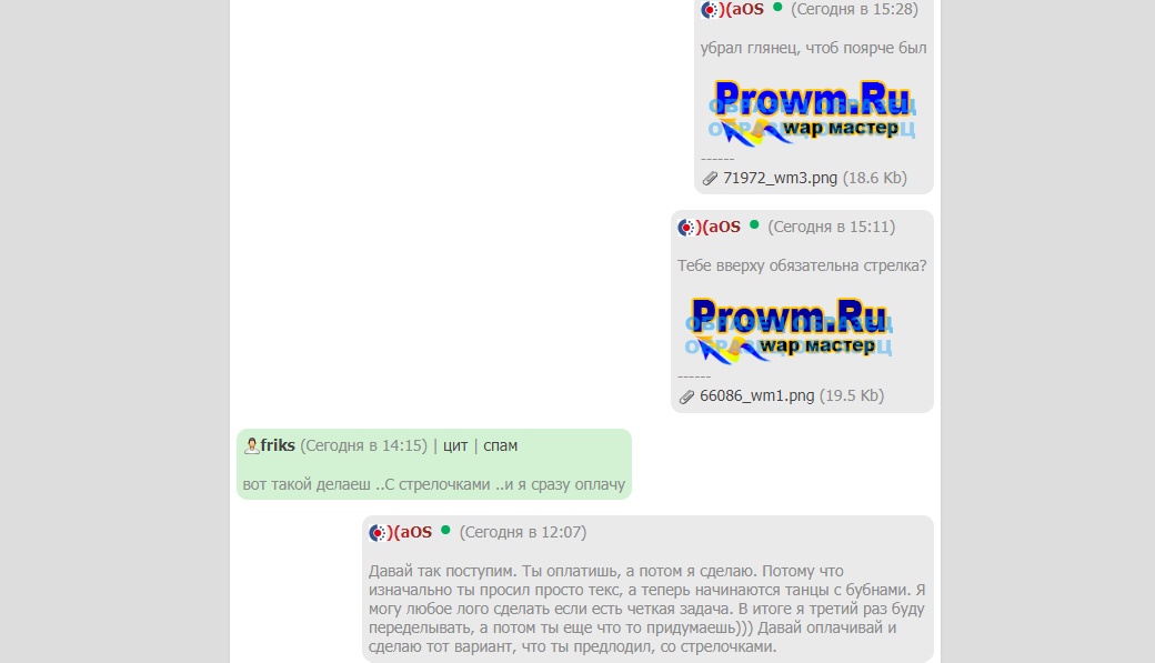 https://bym.guru/id45713 - обратился с просьбой нарисовать простое текстовое лого. Как такового ТЗ не было, мол сделай на свой вкус. Ну я cделал. Потом он скинул какой то кривой шлак и попросил,что то типо этого и точно оплатит. Ну я сделал. Потом попросил изменить размер, потом цвет, потом пля скинул очередную кривую херню и попросил убрать на ней фон и изменить размер. В итоге денег я не увидел, куча потраченного времени, сил и нервов.