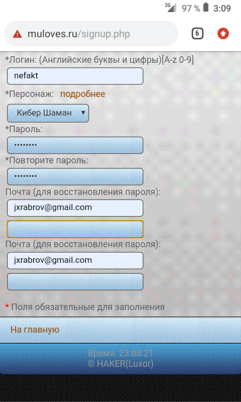 2. У тебя 2 окна ввода имейла