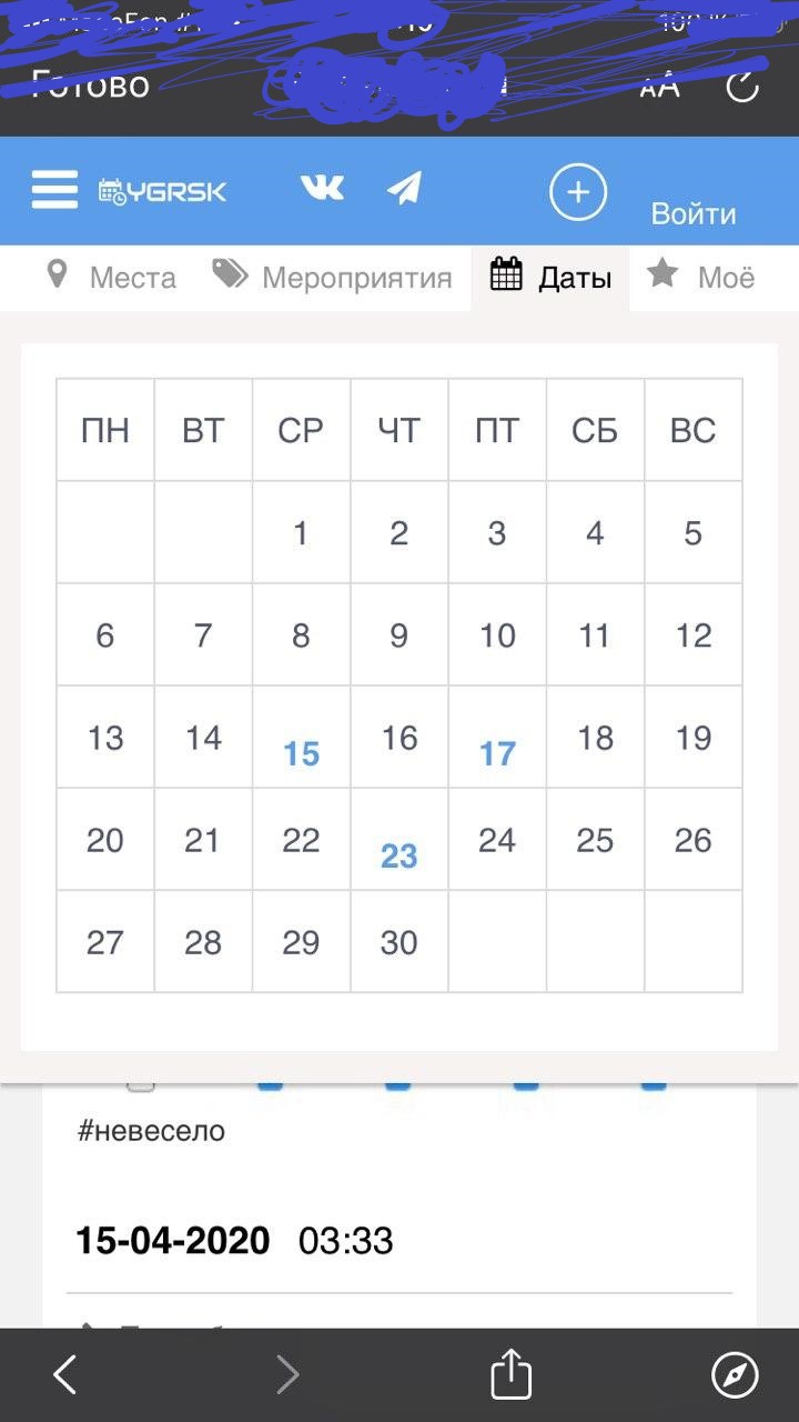 Обратите внимание на числа-ссылки в календаре и на кнопку "Войти"