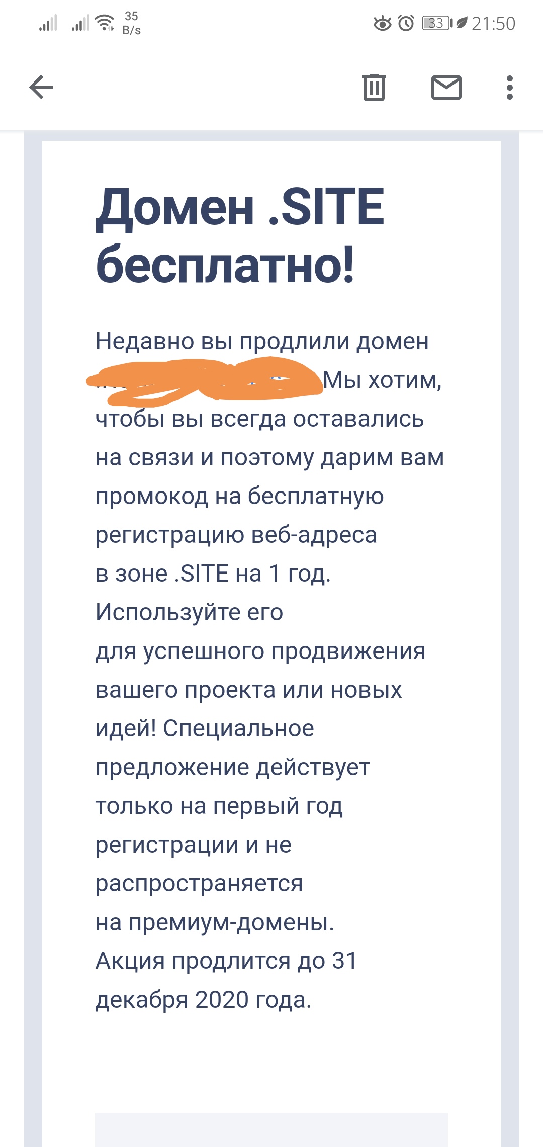 | Домен Site в reg бесплатно на год