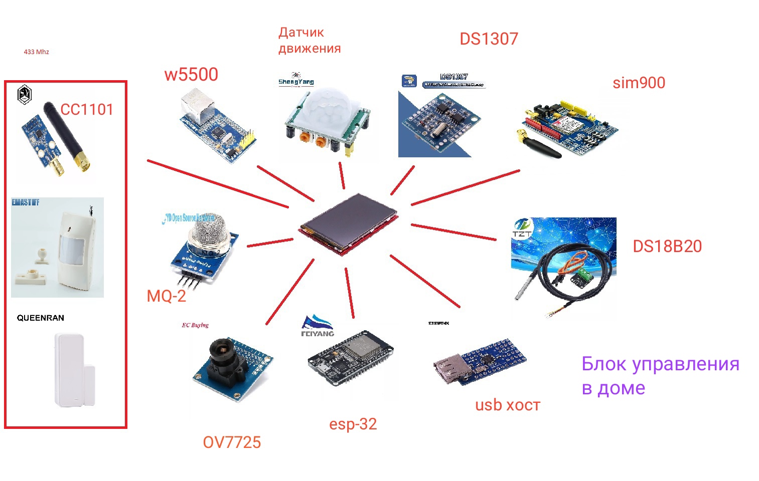Вобщем планирую esp32+sim карта+ w5500+ usb хост+ датчик памяти+ датчик 433Mhz+ веб-камера (одна в usb , вторая на плату)+ датчик движения и датчик температуры с влажностью + датчик дыма+ к этому всему lcd дисплей с управлением умного дома( из управления возможность изменения/добавления номера на который в случае срабатывания датчика будет сперва звонок, затем смс с номером сработавшего датчика, ну и + возможность ручного включения/отключения сигнализации (датчиков движения/дыма/магнитных уловителей на окна( которые скорее всего будут работать через 433Mhz)+ будет ещё 3 отдельные мобильные сборки D1 mini esp32 с реленым щитом d1, с ИК подсветкой, датчиком движения и с usb хостом и usb камерой (почему юсби камеры- потому что считаю что качество у них лучше, usb камеры должны быть ucv, т.е без установки драйверов). На каждой такой D1 сборке будет стоять флешка, на которую будет записываться видео 30 сек, при срабатывании датчика движения и мне на телефон также будет приходить сперва звонок, а затем смс с номером сработавшей сборки.