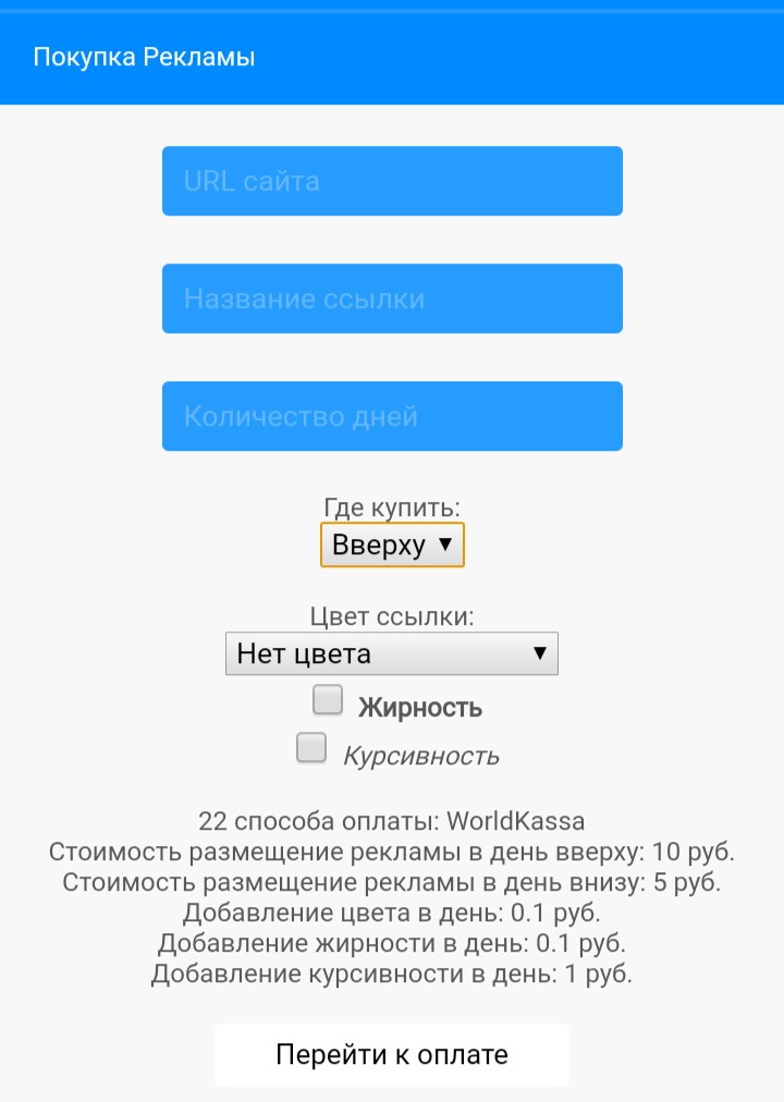 щас скину рекламу) просто можно на верху и в низу устанавливать, цена с админки меняется)
