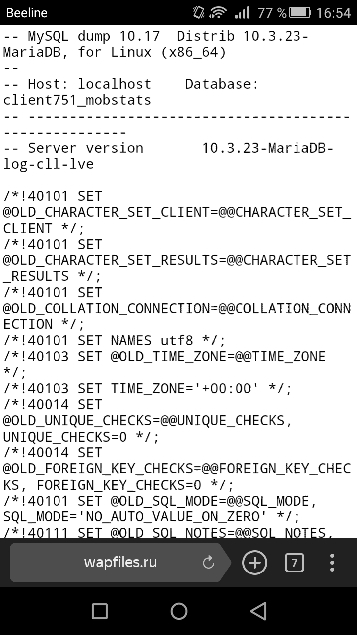 SQL: Файл: http://wapfiles.ru/file/53190617748zip