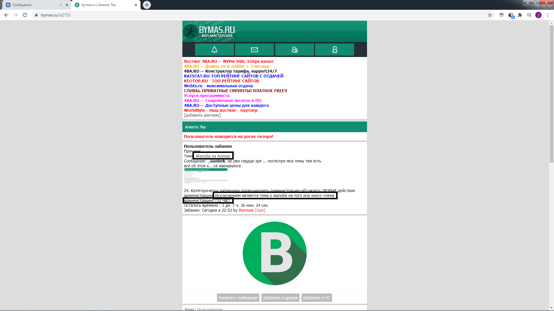 ZnTor , 1000000000% согласен ... но авенахус 1000 раз отправлял меня в бан даже если я не продавал а говорил возможно продам.. ДОПУСТИМ ПИШУ готов типа что то продать но не здесь т.к здесь не имею право продавать по правилам и даю ссылку на вк где вести финансовый разговор и один фиг меня в бан типа мне запрещено тут что то продавать но тут то я не продаю а в вк ... но всем по х... один хрен БАН