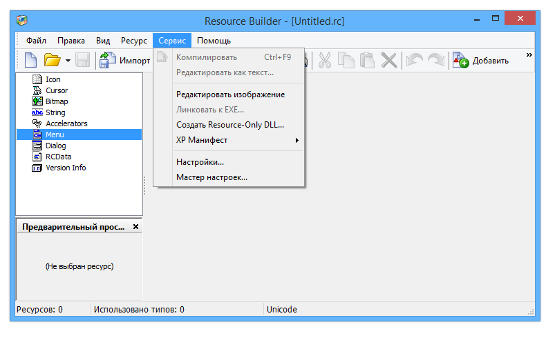 Resource Builder поддерживает юникод, может работать с 64-bit исполняемыми файлами, есть встроенный обозреватель ресурсов и много других полезных фишек, которые помогут вам значительно сократить время на редактирование файлов ресурсов.