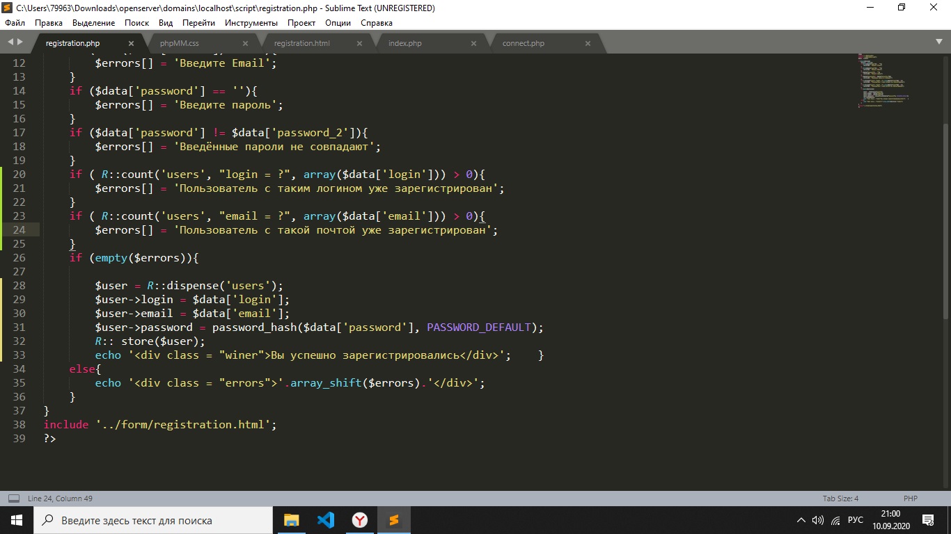 Всем привет, имеется регистрация, если при вводе данных произошла ошибка то срабатывает этот код