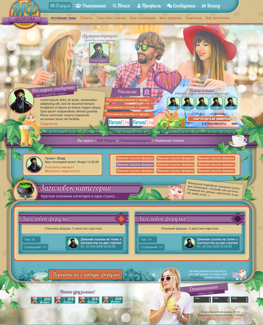 но как бы не моё это. Форум будет ближе к социальному. По этому и брался за основу уклон похожий на ролёвку