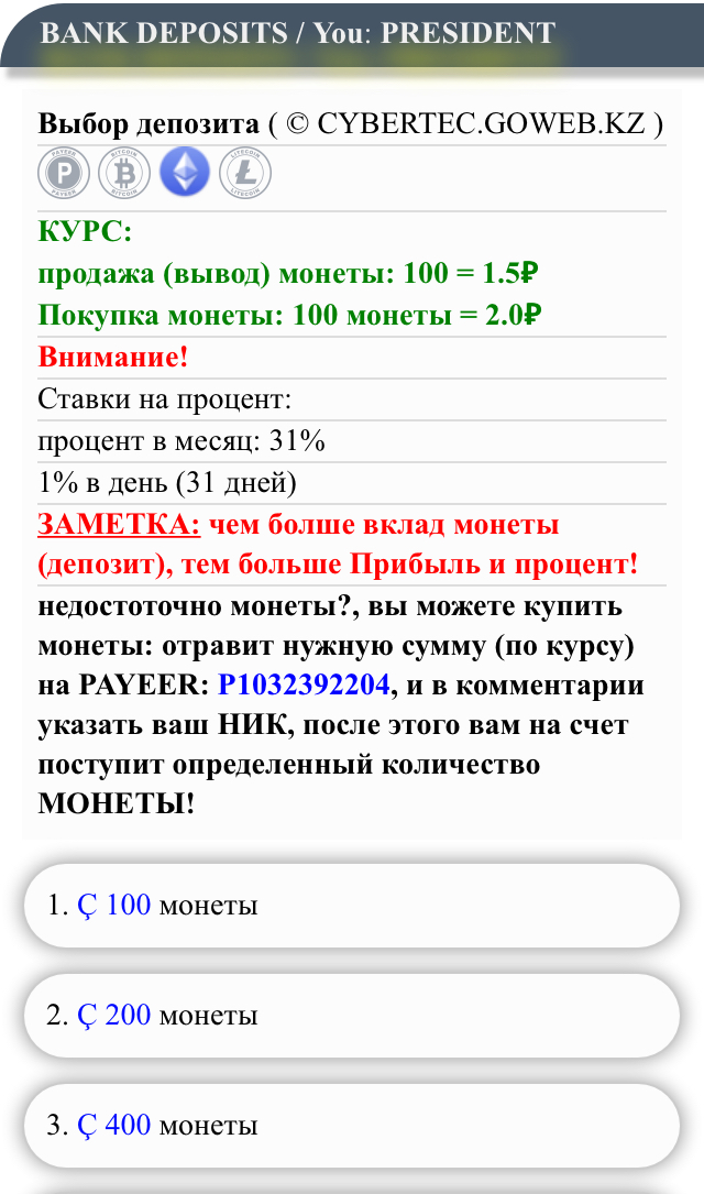 Депозит монеты умнож %