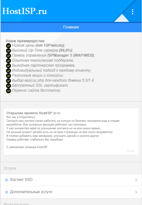Хостинги/Домены | WAP ХОСТИНГ С ISPmanager
