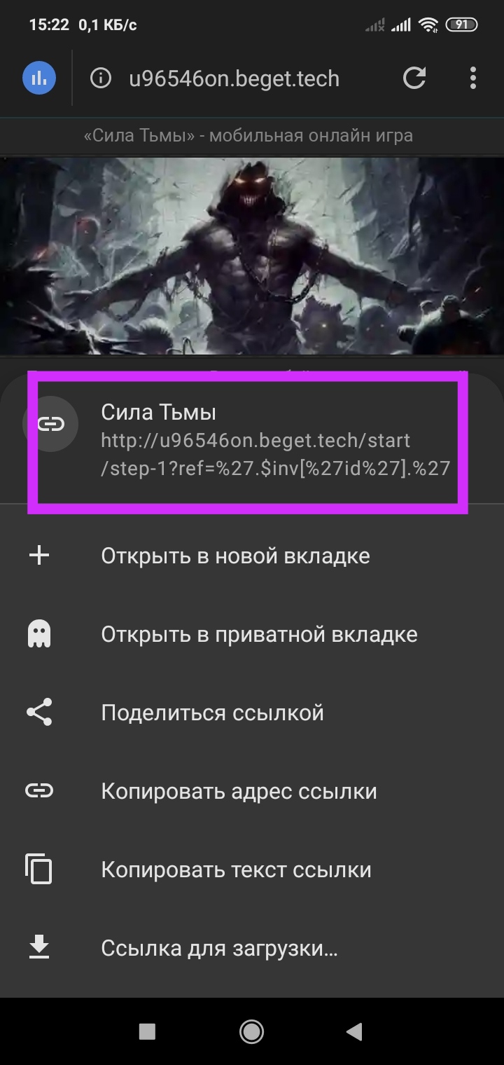 Нажми "Начать игру" и посмотри на ссылку