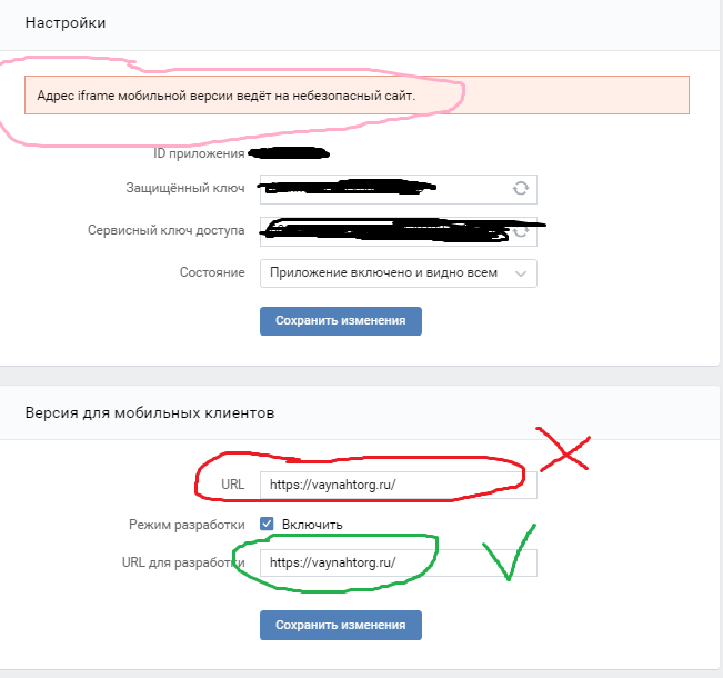 Всем привет) Решил добавить мини приложения в ВКонтакте, и вот все настройки готовы только ссылка на сайт когда добавляю выдает вот такой вот текст Адрес iframe мобильной версии ведёт на небезопасный сайт. В режиме разработчика все пашет нормально и открывает приложение все з*!*!бись там, а когда делаю чтоб видно всем то пишет так!?*