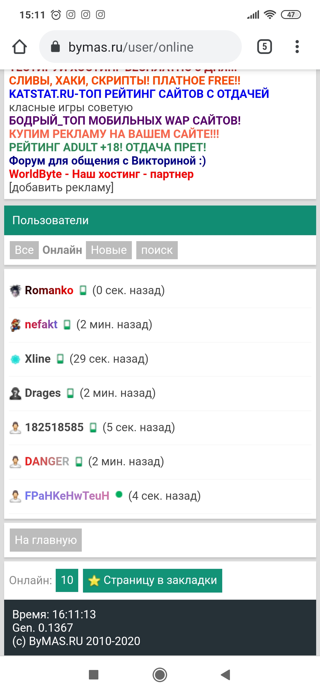 По факту сейчас онлайн 9 чел, а висит что 10