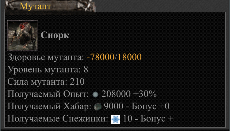 Вот тут при информации мутанта показывает снежинки, но не начисляет игроку
