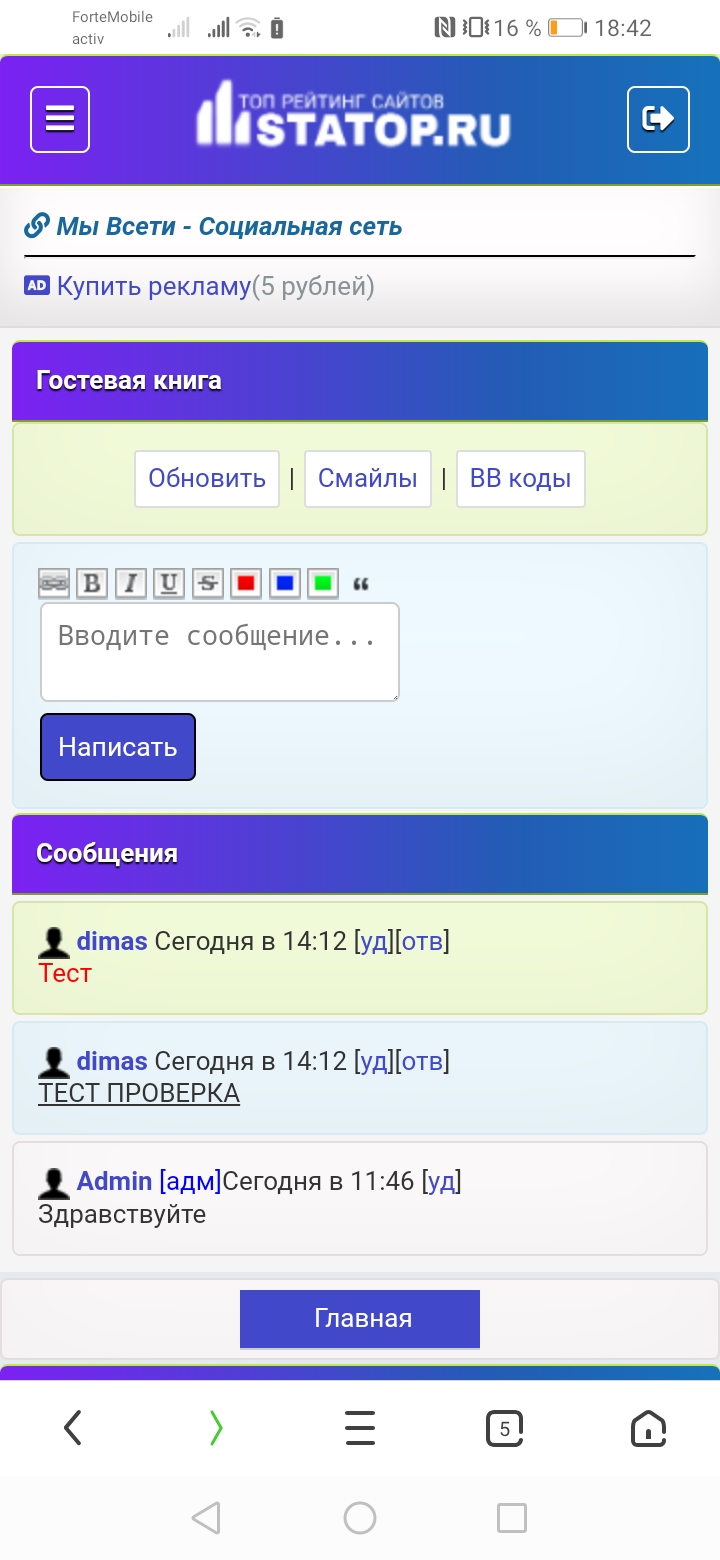 Здравствуйте, у меня есть такое предложение, Как вы думаете Стоит ли сделать сообщение в Топ рейтинг чтобы люди могли писать сообщения лично администратору, или лучше же оставить только гостевую