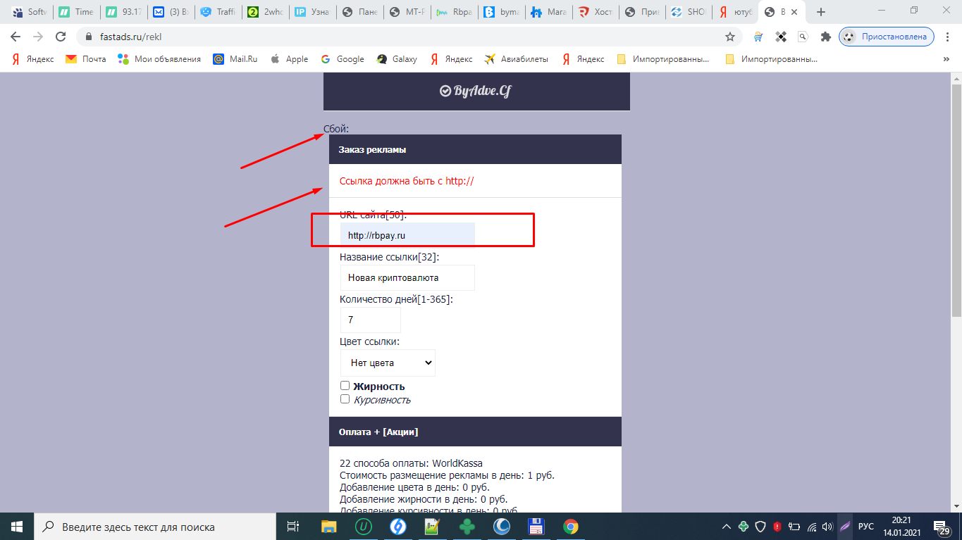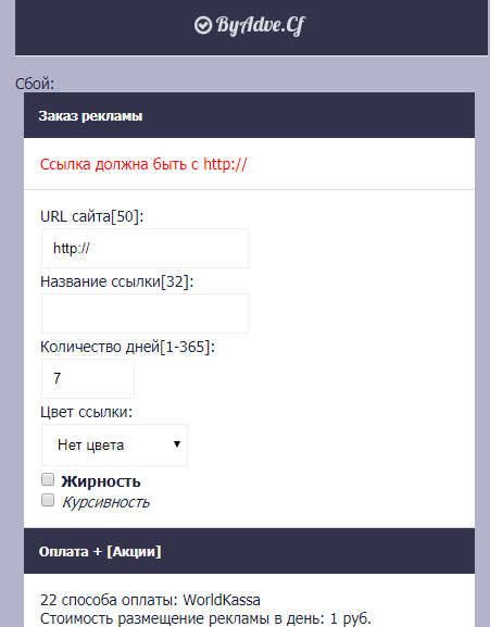 Стоимость размещение рекламы в день: '.$isd.' руб.<br/>