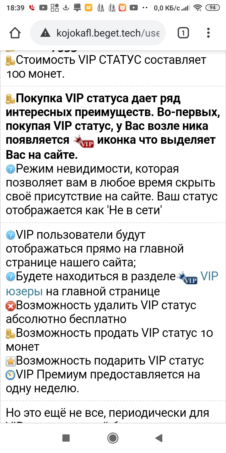 Добавил вип статус