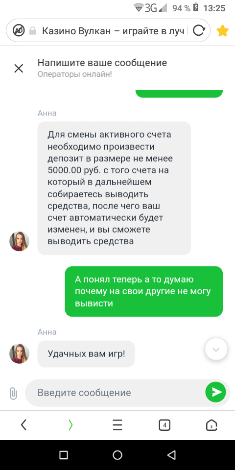 Здравствуйте есть вулкан казино где можно обналичить но связи нет с тем кто пополнял вывисти побывал не могу так как депозит нада другой чтоб снять все