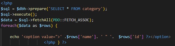 Хочу вывести название разделов выпадающем списке, вардампе все отлично, данные выводятся из базы, а в option не выводятся названия