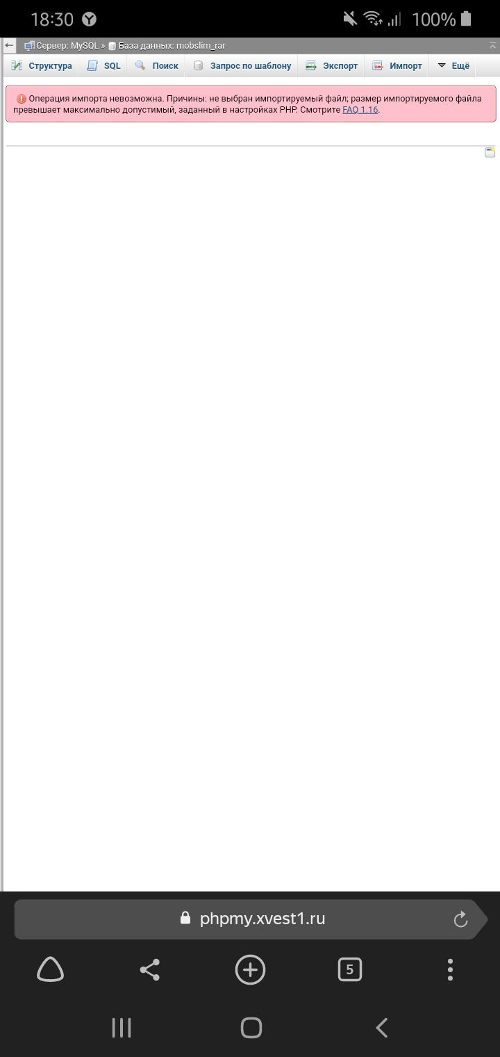 Все привет,такая проблема не могу загрузить базу через phpmyadmin.смотрите на скрин.