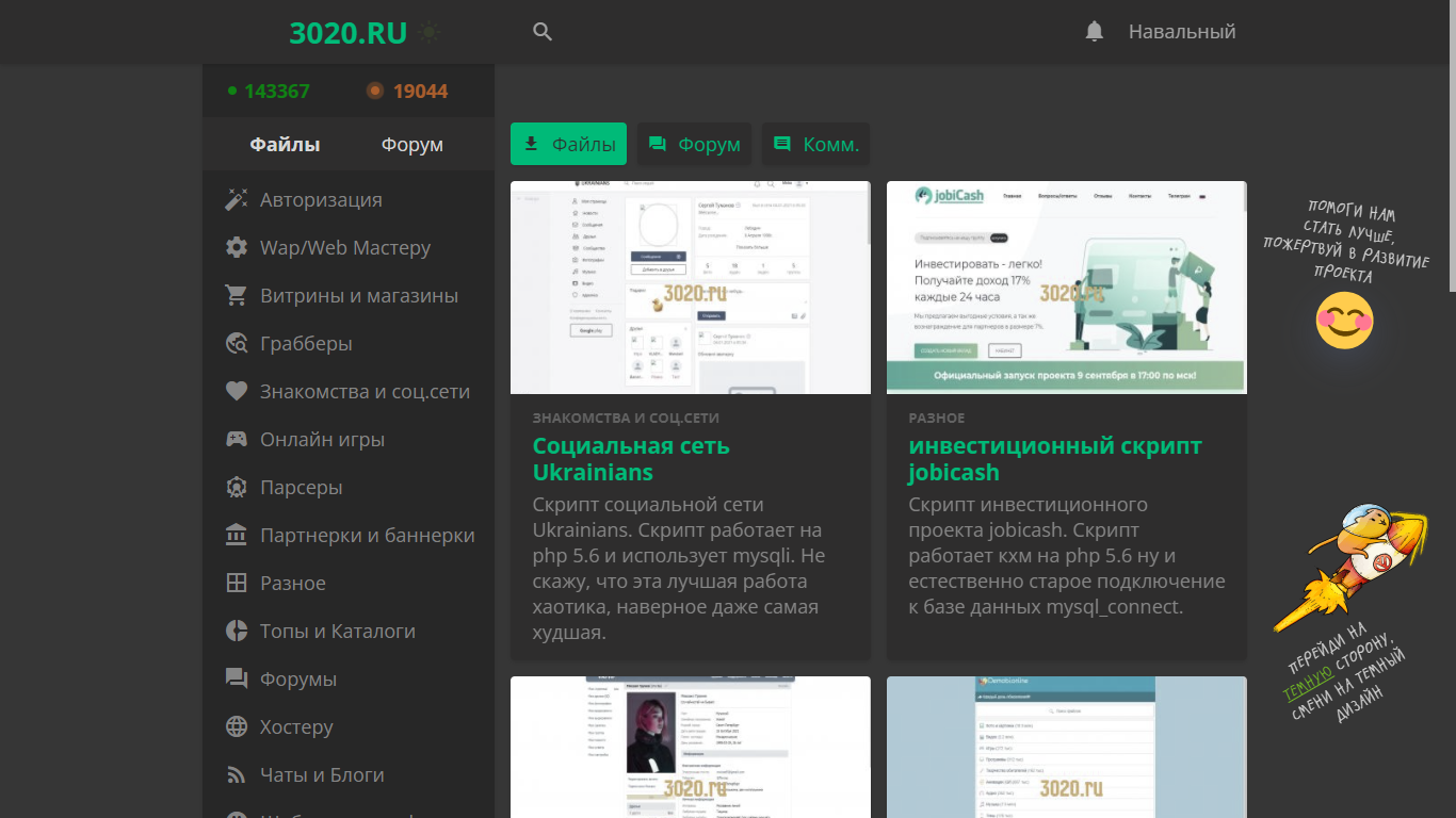 Проект позиционирует себя как файлообменник проверенными скриптами, где вы можете поделиться мнением о скриптах с остальными, посмотреть файлы не скачивая файл, посмотреть визуально на скриншотах как выглядит файл, оценить файл, общаться с другими мастерами и многое другое. Мы хоть и с маленькой командой проверяем каждый файл, устраняем небольшие ошибки и выкладываем исправный файл.
