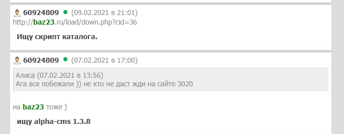 Магистр , Ты мне конкурент? Бххх, не смеши, просто админ baz23 очень знакомый, и поэтому я поддерживаю его и его проект, тебе до баз23 ооочень долеко браться, еслиб ты сам писал скрипты с 0 и выгружал у себя на сайте то это другое дело, я бы тебя тоже поддержал, а так что.. Тыришь скрипты, делаешь пару скринов, везде тыкаешь 3020 как будто псих какойто, и выгружаешь у себя.. Плюс еще название архива тыкаешь цифрами. так что гуляй не по нраву ты с баз23.