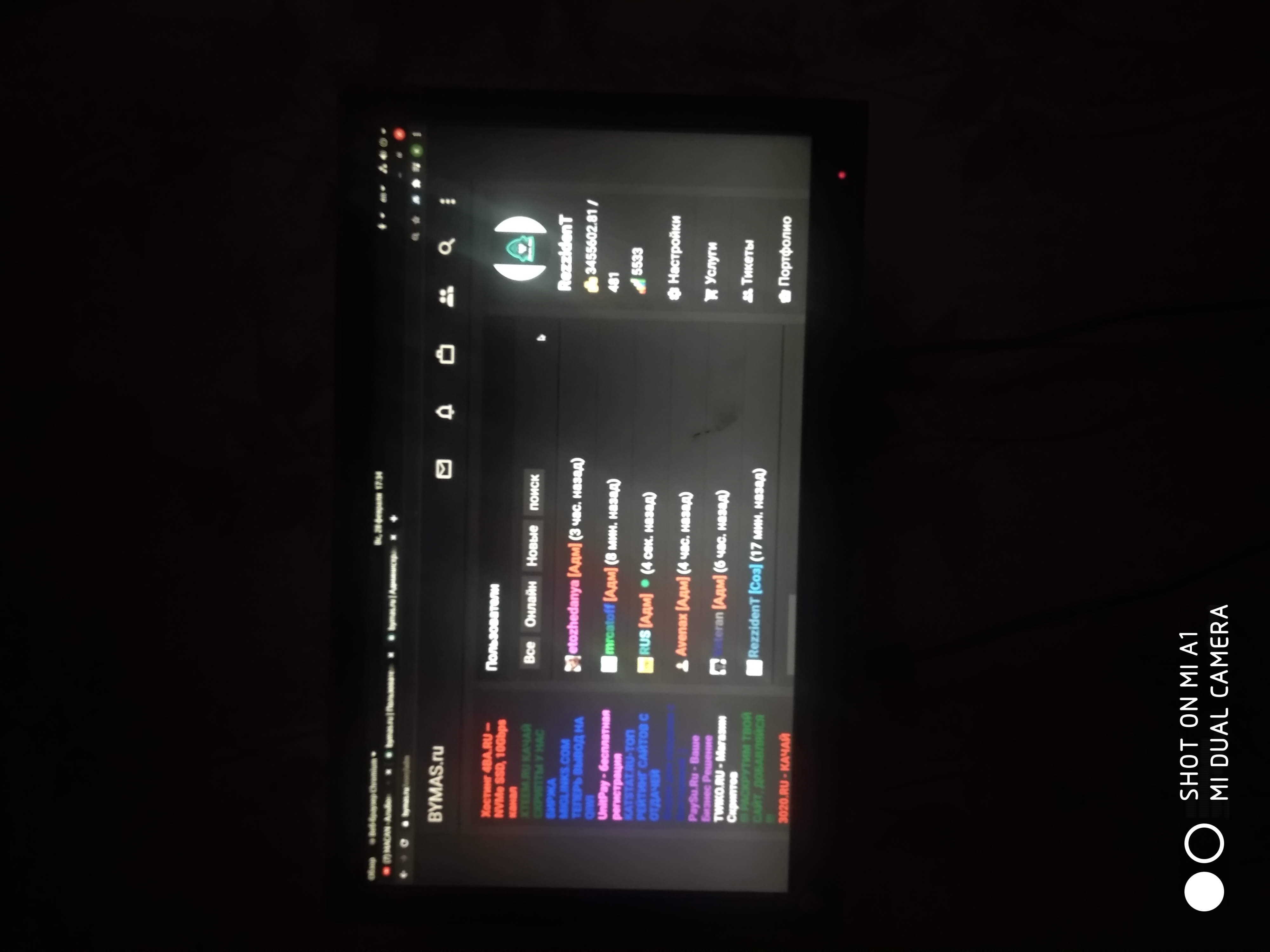 Темная тема адаптивная, с ПК на странице администрации справа баг