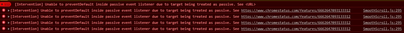 такая проблема, заметил в консоле ошибку при скролинге. Не понимаю, что означает эта ошибка и в какой момент она была допущена.. Она появляется при каждом "шаге" скролинга мышкой на сайте.