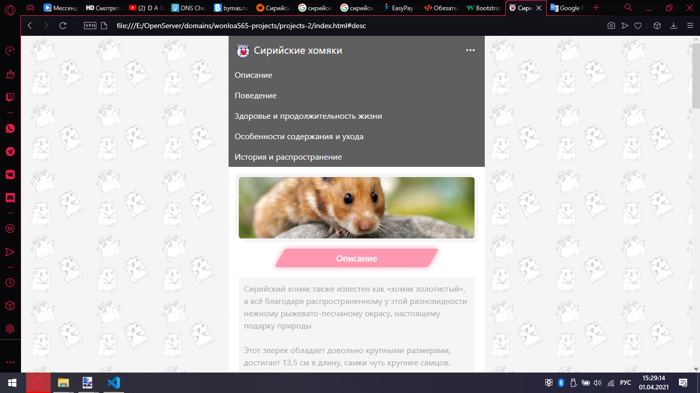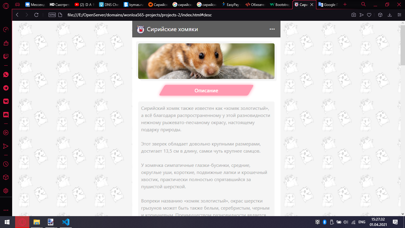 — один хомячок небольшого или среднего размера;