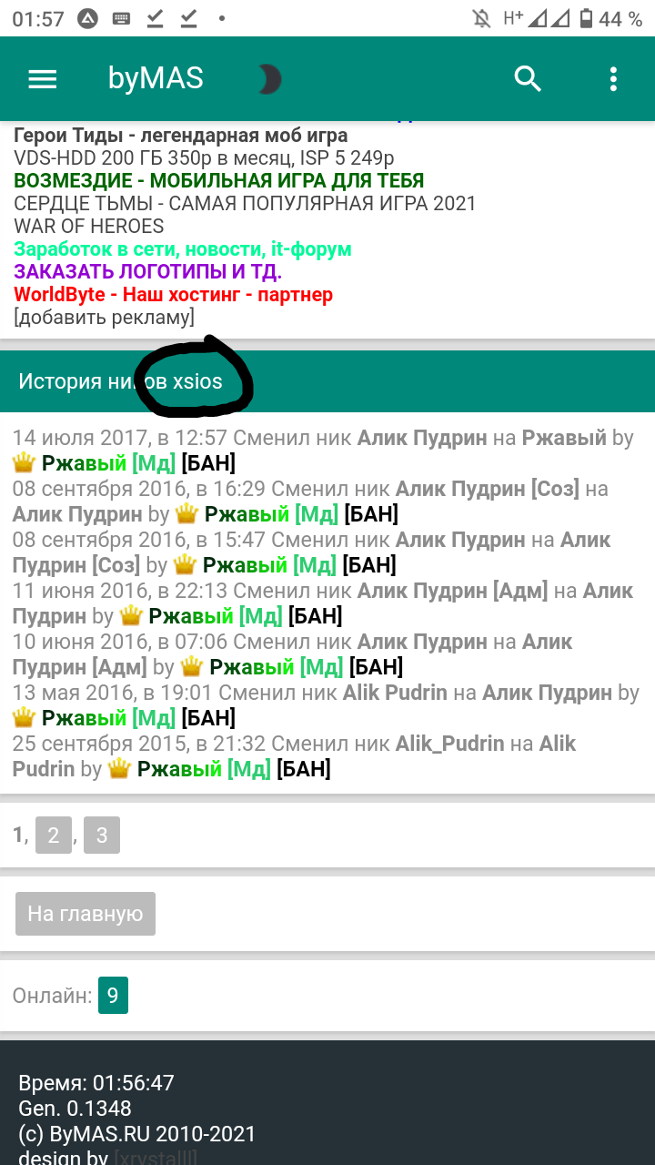 Смотрю историю ников пользователя "Ржавого", но почему-то...