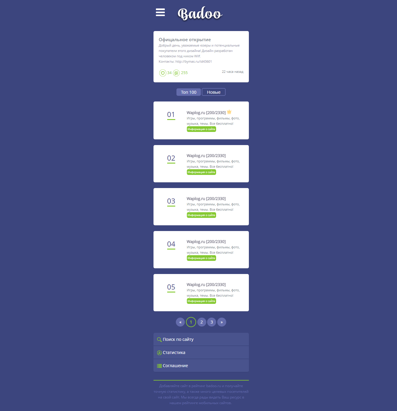 Как я уже говорил - обертка - дизайн - показатель. Именно по ней пользователь в 90% получает либо "положительный" либо "отрицательный" юзер-экспиренс от посещения. У меня посещение вызывает отвращение. Как и у 95% отписавшихся в темах автора.