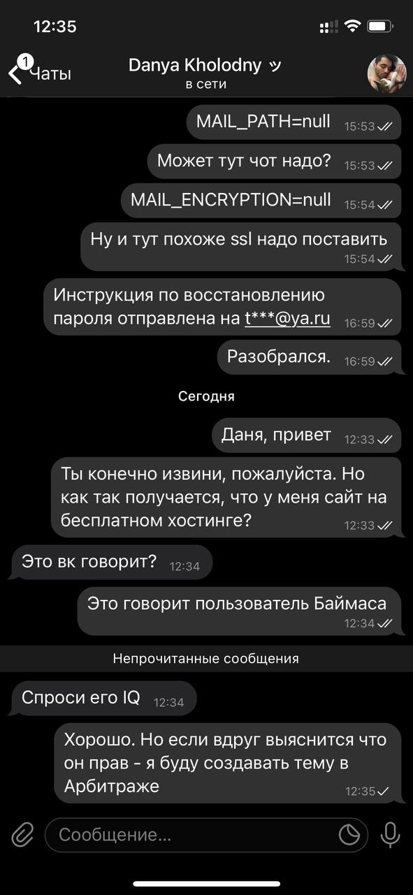 Кстати, я очень оперативно сразу задал вопрос про мой «бесплатный хостинг».