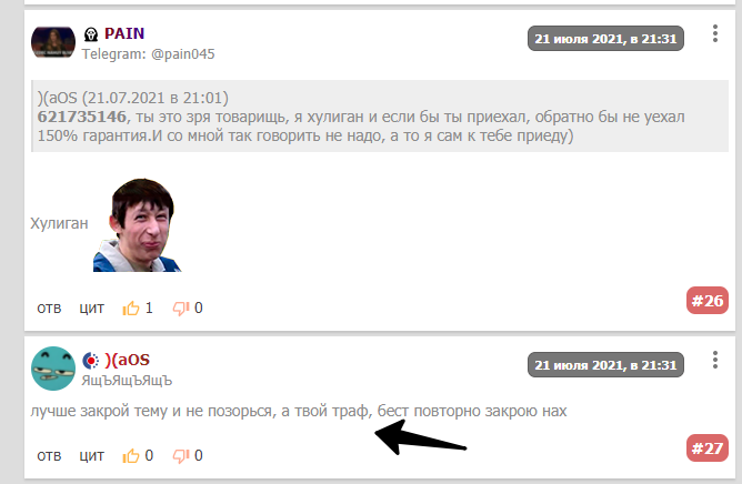 Он мне угражал и делал это не на публику, но на публике его посты были иногда (уже после борьбы с ним) почитай тему https://bym.guru/forum/topic/150029