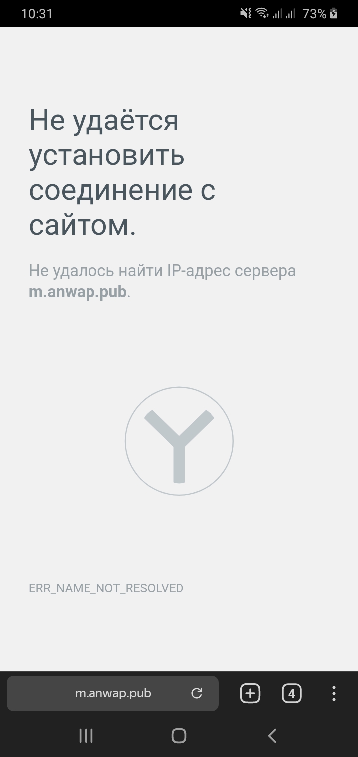 Скорее всего Анвап в блоке у РКН, по этому и выскакивает