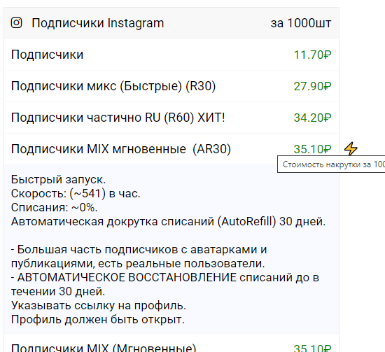 Solidity , если зайти в раздел "цены на услуги" и нажать на интересующий раздел, то откроется информация о каждой услуги (скорость, списания, информация) а микс это значит что там всякие аккаунты (с аватарками, без, русские и другие страны)