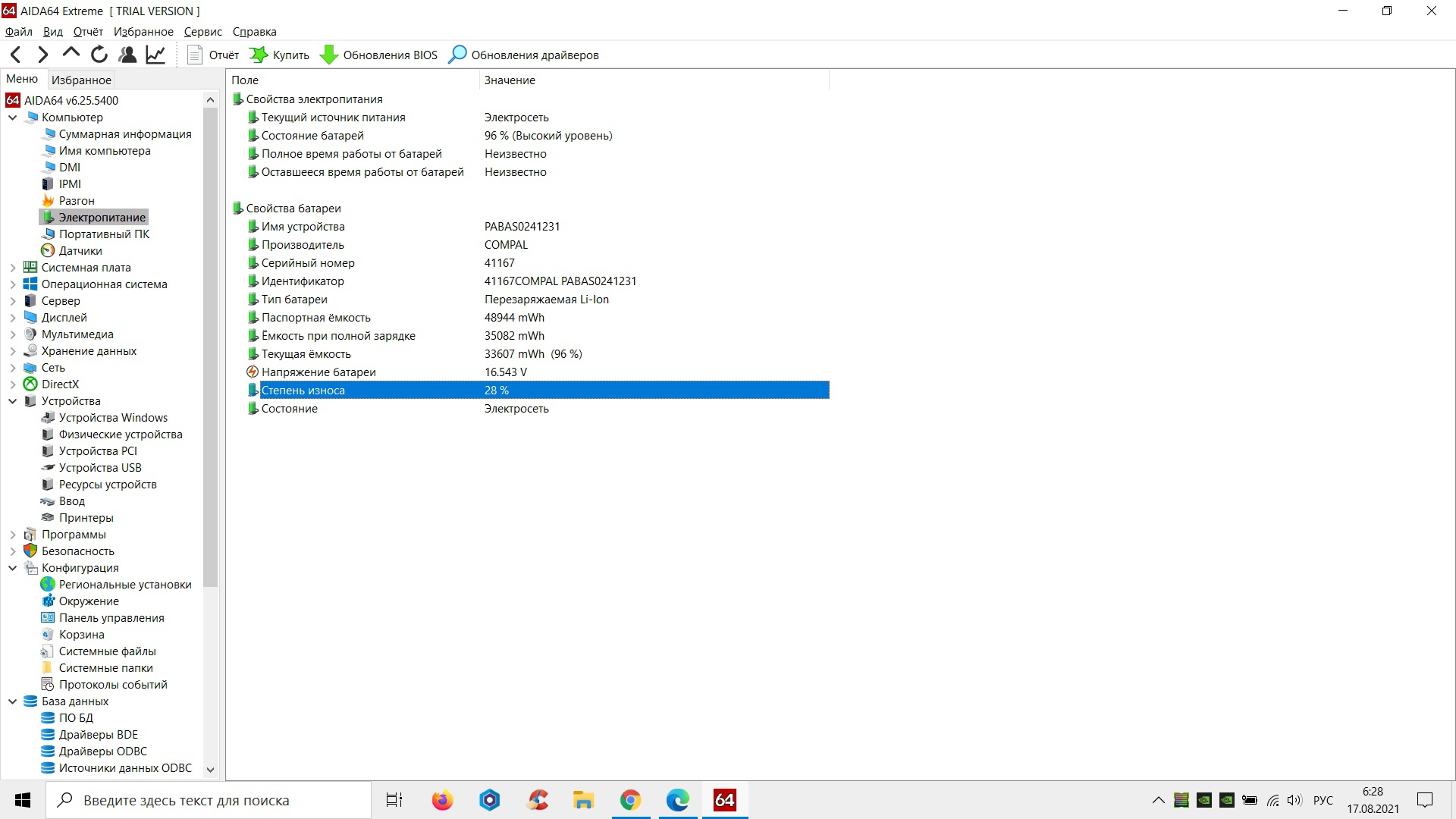 в аиде показывает износ батареи тоько на 26%