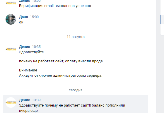 Поставили сайт организации на их хостинг вроде все норм и работает быстро, 3 дня назад забыли внести оплату и сайт лег спать. Вчера внесли оплату на 2 месяца вперед а сайт до сих пор лежит с ошибкой "Аккаунт отключён администрацией сервера". Пишу админу Даня Холодный Вконтакте а от него тупо игнор, сам в сети и не читает!
