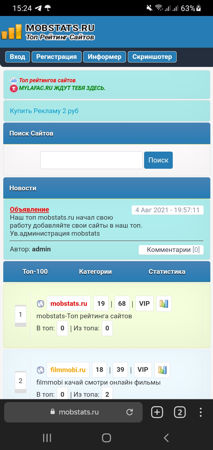 Представляю Вашему вниманию топ рейтинг MobStatS.Ru