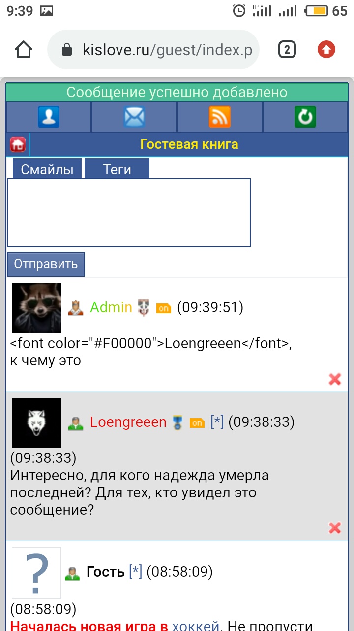 * $url == 1Выводит ник с ссылкой на страницу юзера