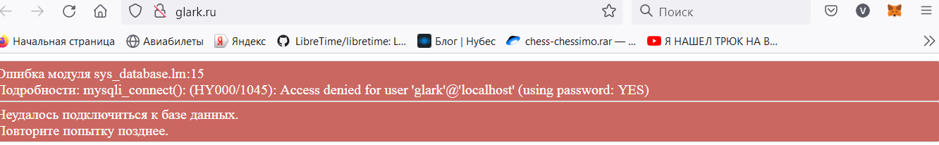 Подробности: mysqli_connect(): (HY000/1698): Access denied for user 'root'@'localhost'