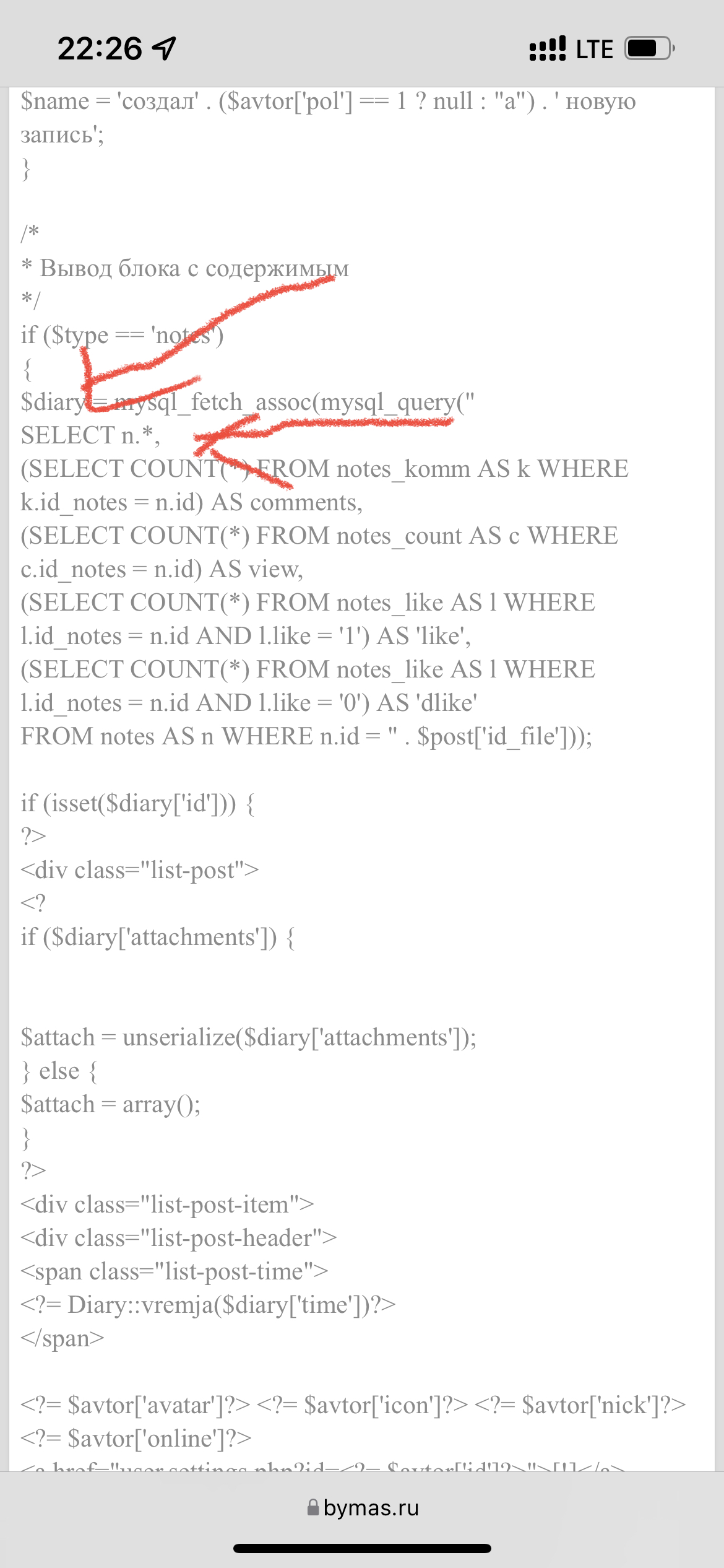 if ($type == 'notes' && $post['avtor'] != $user['id']) // дневники