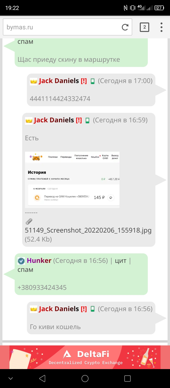 И так, я юзер данного вм проекта создал тему где просил о помощи для обмена денежных средств с киви на монобанк, мне отписался человек который готов был мне помочь в этом вопросе, я как юзер с вип значком имне з мне запрещена любая фин деятельность заслужено готов получить наказание за данную деятельность. Но я надеялся на человеческое взаимопонимание и перевёл средства первым. Так как деньги для меня мелочь, я просто хотел обналичить кошелек киви, пускай они будут учеловека на совести, для меня это пачка сигарет не больше. Я не претендую его вешать на доску, это на ваше усмотрение но просто чтобы люди знали шо на проекте есть мышь, а с мышами надо боротся) И давайте без "да ты сам машонка и т.д" я свою вину осознаю, я нарушил правила и готов понести наказание, но я вам показал человека которому не стоит доверять.