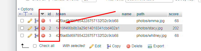CREATE TABLE `photos` ( `id` int(11) NOT NULL, `token` varchar(255) NOT NULL, `name` varchar(255) NOT NULL, `path` varchar(255) NOT NULL, `score` int(11) NOT NULL DEFAULT '2000' ) ENGINE=InnoDB DEFAULT CHARSET=utf8; ALTER TABLE `photos` ADD PRIMARY KEY (`id`); ------