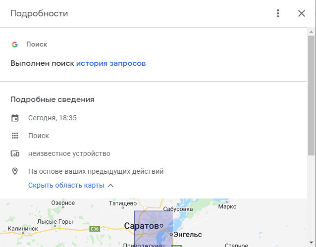 Проверила свой гугл аккаунт, на каких он устройствах активен, то там никакого криминала.